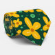 Patrón floral sin foco con flores amarillas pequeñas y puntos turquesas sobre fondo verde oscuro.