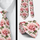 Una corbata de rosas rosas color agua tiene un diseño delicado y suave, en el que los rosas están pintados en sutiles tonos rosas, que van desde el rubor pálido hasta los tonos más subió. Las flores parecen mezclarse suavemente con los trazos de acuarela, dándoles un aspecto suave y etéreo. La corbata tiene un gradiente suave de colores, con salpicaduras de vegetación verde o clara alrededor de los rosas para realzar la belleza natural de las flores. El conjunto sería elegante, romántico y sofisticado, ideal para ocasiones formales o un toque refinado y sutil a un conjunto profesional.