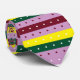 El diseño presenta un patrón formado por rayas horizontales de varios colores, como amarillo, verde, púrpura y rosa. Entre estas franjas de colores hay rayas blancas más delgadas. Cada franja de color está adornada con una secuencia de pequeños puntos que se separan uniformemente a lo largo de la franja. Los puntos aparecen en colores contrastantes a la franja en la que están, como puntos blancos sobre las rayas moradas y verdes y puntos negros sobre las rayas amarillas y rosas. Este patrón repetitivo crea una textura visualmente estimulante que se podría usar para fondos, textiles u otros elementos de diseño debido a sus colores vibrantes y secuencias rítmicas de punto.