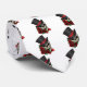 El cráneo de caballero está vestido con su sombrero más alto y corbata de arco rojo con hermosas rosas rojas.