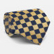 Corbata azul marino con tablero de ajedrez dorado. El código hexadecimal para el azul marino es #202A44.