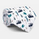 A Golf Patterned Necktie For Him Designed In Golf Carts, Golfers, In Black And Blue On White