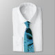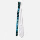 Hermosa corbata hecha con una foto de gotas de agua en las hojas. Colores azules y acuáticos en un fondo oscuro.
