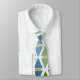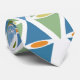 Esta corbata tiene un diseño moderno de triángulos de mediados de siglo cuyos fondos han sido curvados, puestos en pares con un óvalo entre ellos.