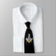 Gravata preta com símbolo da Maçonaria, o esquadro e compasso, colorido e estilizado.