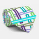 Esta corbata tiene un diseño art déco, de una manta de dos tonos turquesa, dos tonos violeta y dos tonos verdes.