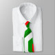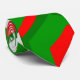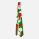 Esta corbata tiene un diseño geométrico Navidad de hexágonos en conjuntos de tres que parecen flores en rojo, blanco y verde.