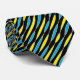 Patrón geométrico retro compuesto de líneas verticales con formas de hoja o barco. Disponible en varias combinaciones de colores. Esta versión tiene azul y amarillo, y está delineada en amarillo pálido sobre un fondo negro.