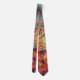 Un elegante corbata color turquesa rojo presenta un árbol de arce rojo vibrante contra un patrón de arquitectura turquesa en segundo plano.