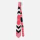 Esta corbata tiene un diseño inspirado en el tejido art deco de formas diamantíferas en blanco, negro y rosa en un campo de sandía.