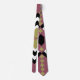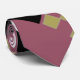 Esta corbata tiene un diseño inspirado en el tejido art deco de formas diamantíferas en negro, blanco y bronceado en un campo de malva.