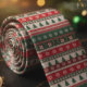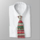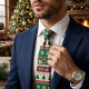 Patrón de corbata inspirado en el clásico suéter feo de Navidad, repleto de alegres motivos navideños: rayas rojas y verdes bosque que se repiten y están llenas de copos de nieve, bordes geométricos nórdicos, arbolitos de Navidad, bastones de caramelo, regalos envueltos, corazones y estrellas. La vibrante y acogedora combinación de colores y los intrincados detalles de estilo fair-isle transmiten esa auténtica y divertida energía de suéter feo nostálgico en un sofisticado formato de corbata, perfecto para fiestas de Navidad en la oficina, fotos familiares navideñas, concursos de suéteres feos formalizados o para cualquiera que quiera aportar alegría festiva al atuendo de trabajo sin pasarse.