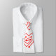 Este corbata tiene un diseño moderno de mediados de siglo de San Valentín de máscaras rojas dispersas en un campo blanco.