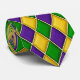 Mardi Gras Harlequin Diamond Tie Gaudy y Loud con hileras alternantes de morado, verde y oro con un patrón grande. Hay patrones más pequeños disponibles para los menos audaces entre nosotros.