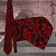 Una dramática corbata de cuello negro y rojo boda con un brillante patrón rojo de damasco floral sobre un sólido fondo negro.
