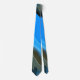 Un diseño abstracto azul vibrante de una cima de montaña y un cielo.