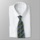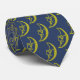 Divertida corbata de cuello en el patrón de la cara lunar. Luna de oro con patrón de gafas en un fondo azul. ¡Guay y divertido!
