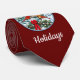 Un par de cardenales rojos del norte se colocan en una valla blanca cubierta de nieve adornada con guirnaldas de Navidades y un brillante arco rojo. Se deleitan con un alimentador de pájaros de invierno decorado con campanas de Navidad, cinta y aliño. Obra de arte realista creada por la artista de vida silvestre Crista S. Forest.