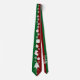 corbatas de navidades con un diseño rojo y verde llamativo. La corbata está adornada con obras de arte de árboles de Navidad, medias, ornamentos y regalos. El arte está rodeado de copos de nieve, con un espacio para los nombres o un mensaje personalizado en la parte delantera y trasera. Message MineByDesign para obtener ayuda con este diseño o cualquier otro diseño que usted visualice.