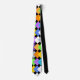 Esta corbata tiene un diseño geométrico de diamantes de neón que se superponen en un campo de negro.