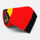 Alegría en el negro, el rojo, y el oro en este lazo rayado.