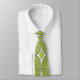 Esta corbata tiene un diseño art deco de ovales verdes con líneas grises y diamantes con diamantes entre un campo de blanco.