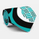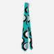 Esta corbata tiene un diseño moderno de mediados del siglo de líneas que hacen que los círculos dentro de ovales se unan en turquesa, negro y blanco.