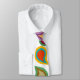 Esta corbata tiene un diseño moderno de mediados de siglo de paisleys recubiertos de colores retro.