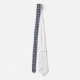 Un patrón de círculos y formas de estrellas parciales, en los colores de azul grisáceo y gris muy claro, mostrados en un empate masculino. — Obra de Christina Spiegeland.