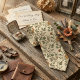 Corbata encantadora y elegante que presenta un delicado patrón de enredadera con pequeñas flores silvestres naranjas y amarillo dorado, brotes y suaves hojas verde salvia sobre un fondo crema claro. El intrincado diseño botánico tiene un hermoso toque vintage con un toque fresco y romántico que sigue siendo versátil y masculino. Este patrón inspirado en la naturaleza ofrece una alternativa refinada a las corbatas lisas, lo que lo hace perfecto para bodas de primavera y verano, fiestas de jardín o cualquier ocasión en la que desees una declaración floral sutil pero distintiva.