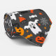 Símbolos de Halloween muy bien surtidos con un fondo gris oscuro. Fantasma arañas murciélagos y calabazas en blanco y amarillo naranja.