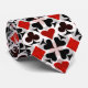 Juego de cuatro iconos de juego de tarjetas patrón negro y rojo sobre fondo blanco. Esta corbata del cuello del casino es perfecta para cualquiera que ame juegos de cartas como el póquer, el puente o el blackjack. ¡Un regalo divertido para amigos, compañeros de trabajo o familia en Navidades o cumpleaños, y cualquier ocasión para dar regalos!