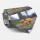 Esta impresionante corbata muestra una hermosa y detallada fotografía de 4 pequeñas taburetes amarillos saliendo de un registro en un parque. El fondo está difuminado y los hongos son fotografiados a nivel para que veas el mundo desde su perspectiva.