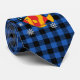 Ilustracion de un pez naranja tropical amarillo navidad bajo el océano con burbujas en un fondo de patrón búfalo de cuadros negros azules. Esta corbata de cuello con un lindo diseño de personalizado es un regalo para los amantes de la Navidad, los amantes de la pesca y los amantes del buceo.