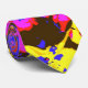 Un vibrante diseño de arte pop azul, púrpura, rojo, amarillo y negro de petunias.
