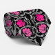 Lazo en un modelo de la materia textil de William Morris del vintage de las flores y de las hojas estilizadas - flores del pimpernel en una pendiente de profundamente para encender rosa fucsia, con gris plateados ligeros/hojas grises, en un fondo negro