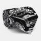 este lazo blanco utiliza gráficos negros de coches, de señoras, y de otras imágenes para crear una pared graffitied que camina