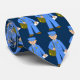 Esta corbata está decorada con múltiples imágenes de un cartero de juguete sobre un fondo azul oscuro.