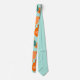 Esta corbata tiene un diseño escandinavo de flores y hojas en varios matices de naranja y verde azulado.