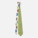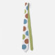 Esta corbata tiene un diseño geométrico de puntos azules, verdes y marrones.