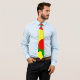Pareja caprichosa de cuello diseñada con diferentes tamaños de puntos de polka rojo, amarillo y verde sobre un fondo negro. Los clientes pueden mover y cambiar el tamaño de cada punto.