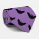 Corbata púrpura, ropa de traje de negocios y accesorio de moda casual con imagen de diseño de arte de murciélago negro de TheFabricSeal en Zazzle es un simpático y simple murciélago negro solitario con colores de fondo de naranja de Halloween y púrpura de Halloween, ilustración en estilo silueta con ojos verdes caqui y naranja calabaza asomándose, mirando en busca de amigos y presas por igual y una noche oscura y genial de aventuras de Halloween, duendes, brujas y fantasmas.