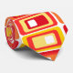 Esta corbata tiene un diseño moderno de mediados de siglo de rectángulos apilados tres gruesos en colores cálidos de rojo, naranja, oro y amarillo sobre un campo de blanco. ¿Quieres el mismo diseño con colores diferentes? Mándame un mensaje.