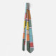 Esta corbata tiene un diseño boho y moderno de rectángulos adheridos a líneas verticales de varios tamaños y colores retro.