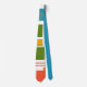Este corbata presenta un diseño moderno de rectángulos y líneas en los colores de los años 60.