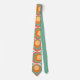 Este corbata tiene un diseño moderno de mediados de siglo de círculos concéntricos en los colores de los años 70 con estrellas entre cada grupo.
