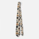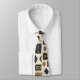 Earthy geometric pattern necktie inspired by tribal mudcloth textiles, featuring hand-painted rectangles, diamonds, and triangles in charcoal black and terracotta on a textured beige background. A warm boho design ideal for rustic décor lovers, artisan style fans, and anyone drawn to earthy geometric aesthetics.