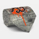 El diseño único presenta un tema gris y negro con textura con siluetas negras de palmeras y salpicaduras de pintura naranja.