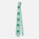 Un trébol verde/ shamrock dentro de un círculo que dice Kiss Me; soy irlandés sobre un fondo de puntos polka verde y blanco. Corbata para el Día de San Patricio.