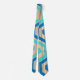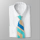 Esta corbata tiene un diseño geométrico de hexágonos en cuatro tonos azules sobre un campo de rayas de color marrón en dos matices.